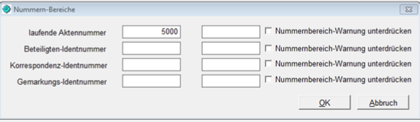 Einstellen der Aktennummern (NoRA NT)