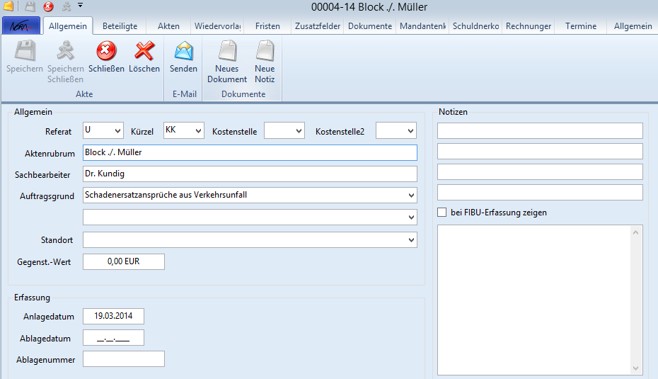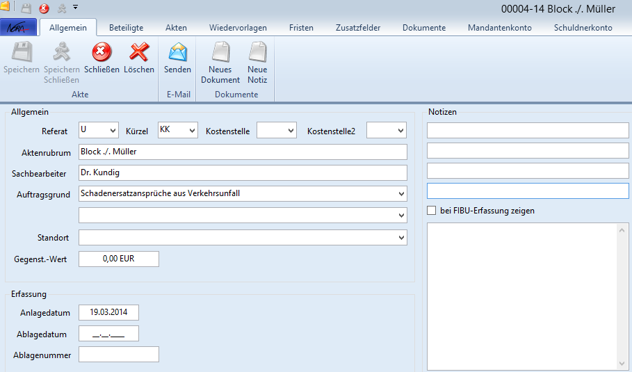 Sofern die erste Aktennummer im neuen Jahr nicht bei 01-14 anfangen soll, ist dies durch eine Einstellung innerhalb der NoRA zu ändern.
