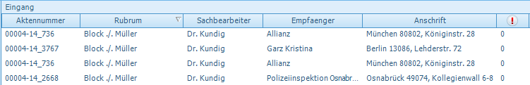 Änderung der Aktennummern